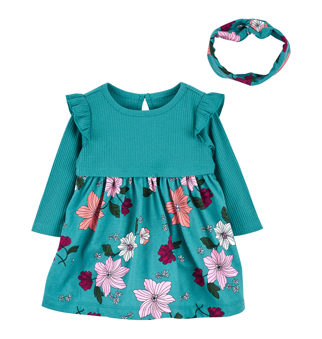 Set Vestido y Balaca Flores Aguamarina Bebés Niñas - Carter's