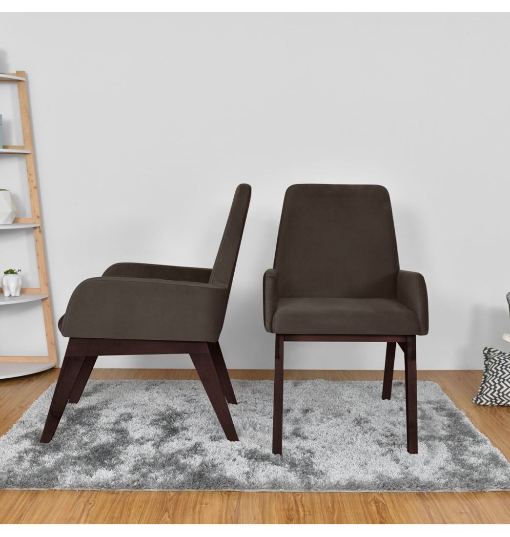 Silla Islandia Tela Chocolate Patas Caramelo - Hogar Venecia