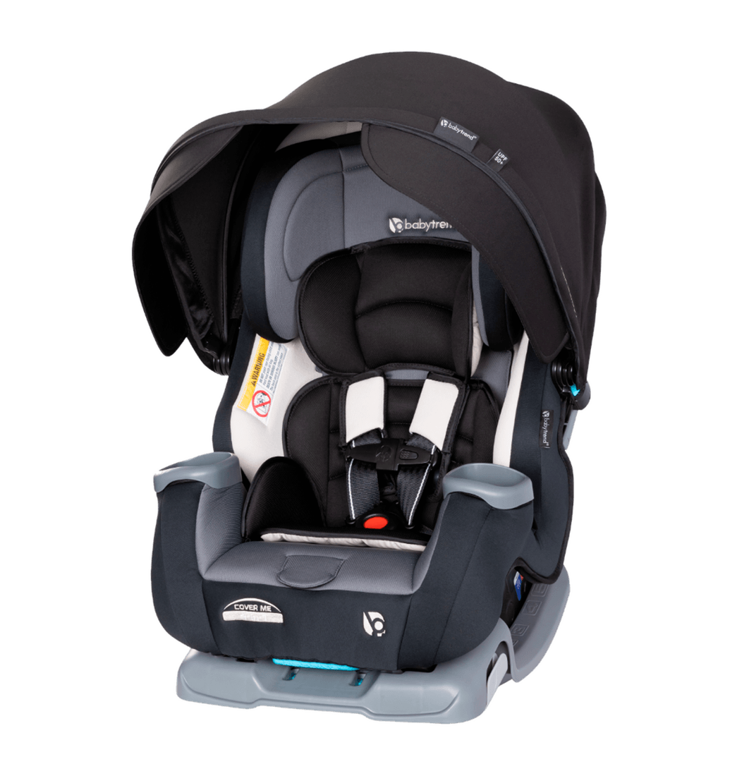Silla de auto para bebé convertible 4 en 1 Cover Me de Baby Trend cuenta con una capota patentada integrada, ajustable en altura y ángulo, con protección solar UPF 50+, que ofrece una protección total en el auto.