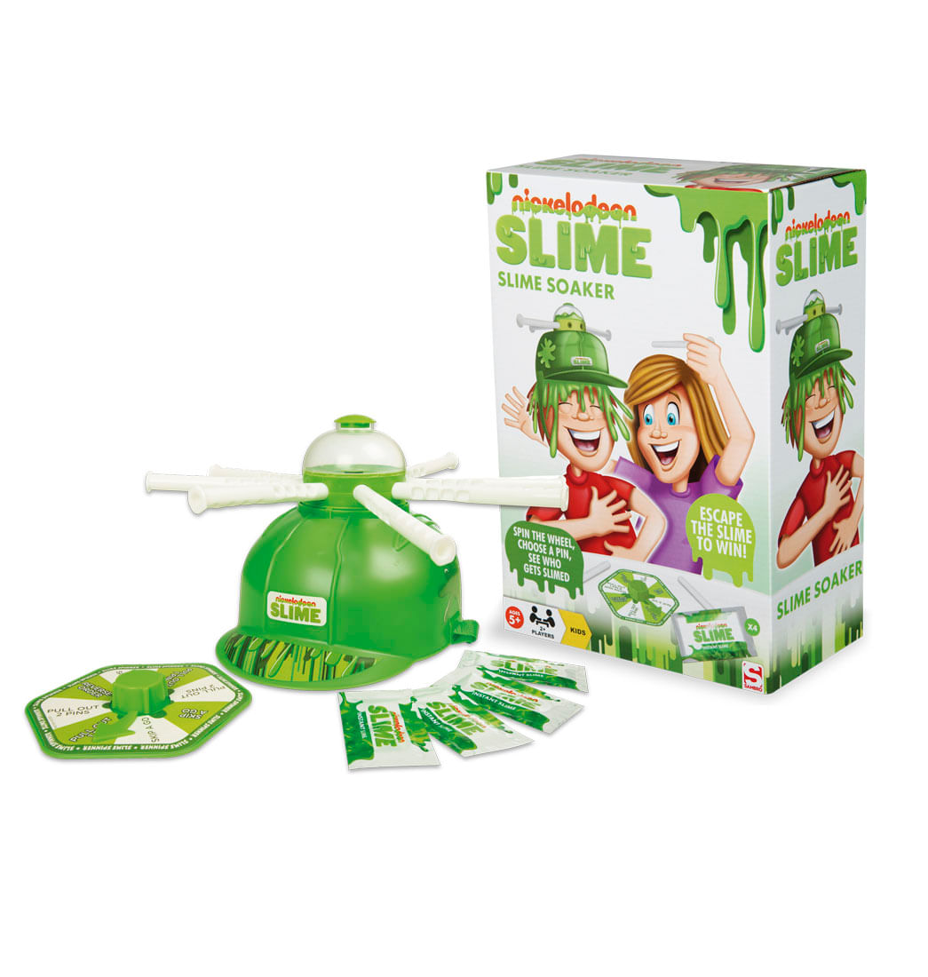 Con este Slime Soaker, tu hijo podrá llenar de Slime al perdedor, sólo tendrá que girar la ruleta, y elegir qué pin quiere introducir en el gorro de su contrincante, pero debe tener cuidado, ya que al primero que le explote pierde y ¡¡¡quedará pringado de Slime!!! Sorprende a tu pequeño, despierta su imaginación y ¡Anímate a llevarlo! Recomendado para niños mayores de 5 años.