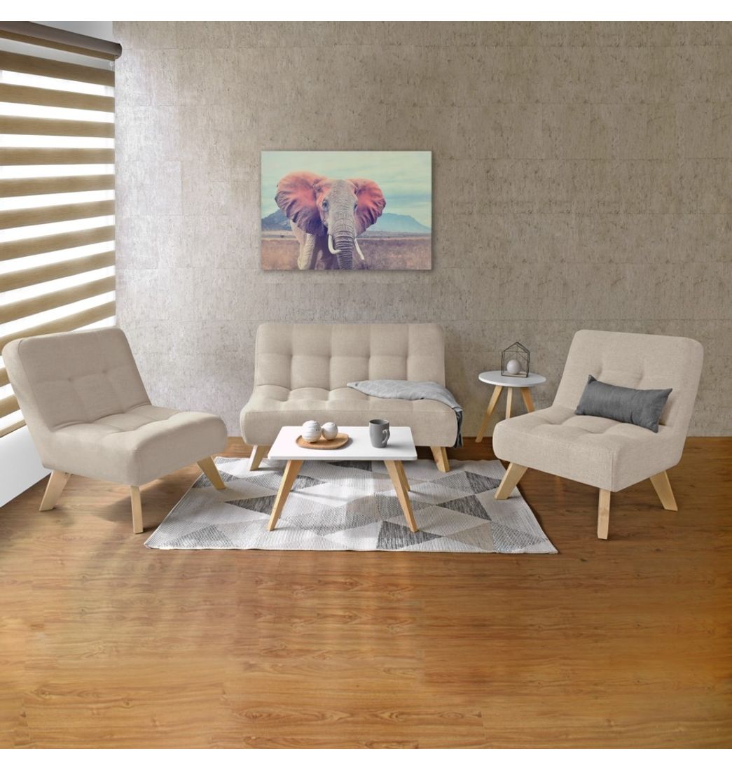 - Incluye: 1 Sofá, 2 Poltronas y 1 Mesa de Centro. No incluye elementos decorativos.