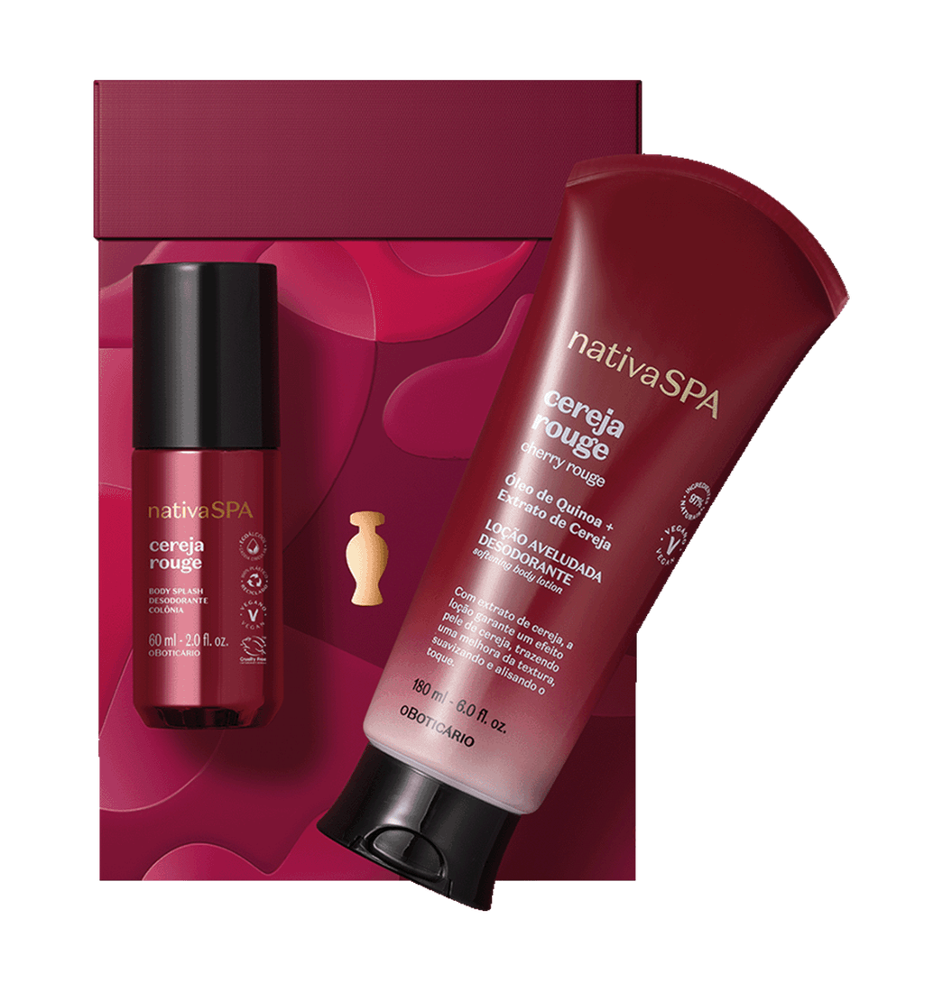 El kit de regalo lleva la rutina a otro nivel con el body splash corporal Nativa SPA Cereza Rouge que envolverá todo el cuerpo en este aroma delicioso, inspirado en las provocativas cerezas. El mejor regalo para ellas en Amor y Amistad. ¡No lo pienses más y anímate a llevarla ahora!.