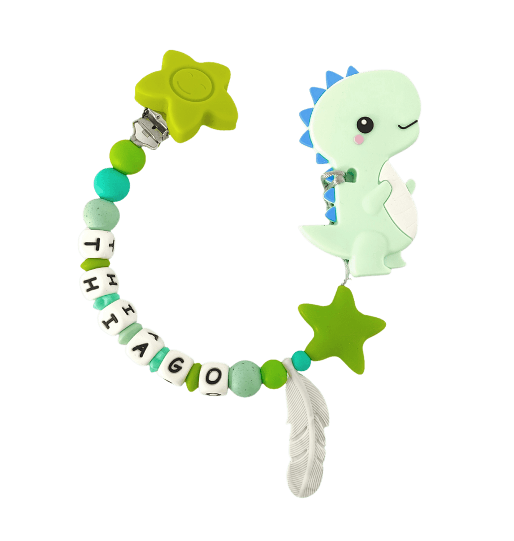 Con una encantadora figura mordedora y el nombre de tu pequeño/a (hasta 10 letras), este sujetador no solo calma sus encías, sino que estimula su curiosidad y sentidos. Además, su clip resistente permite sujetarlo fácilmente a la ropa, la cobija o el coche, evitando caídas y manteniendo todo siempre a la vista. También puedes usarlo como portachupo.