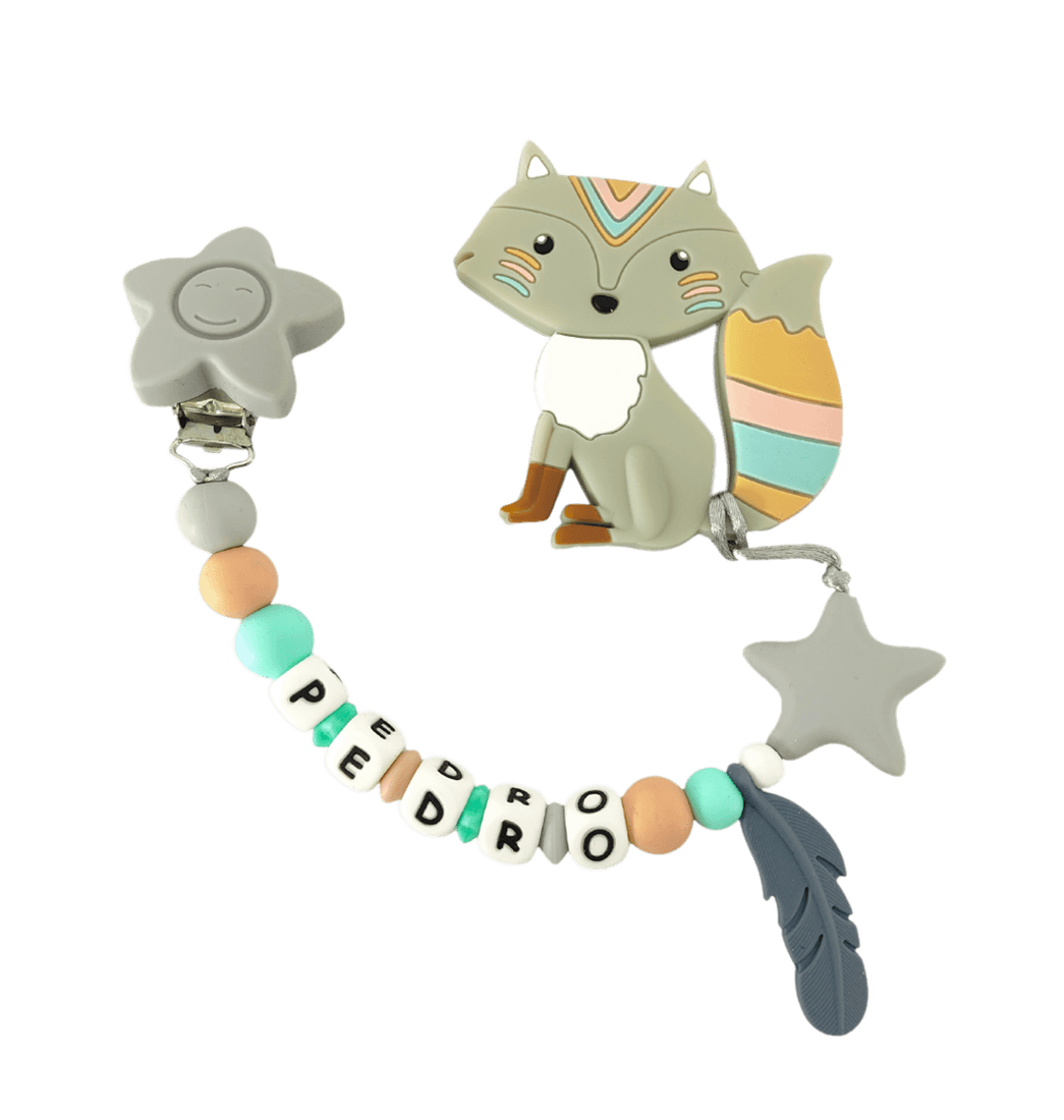 Con una encantadora figura mordedora y el nombre de tu pequeño/a (hasta 10 letras), este sujetador no solo calma sus encías, sino que estimula su curiosidad y sentidos. Además, su clip resistente permite sujetarlo fácilmente a la ropa, la cobija o el coche, evitando caídas y manteniendo todo siempre a la vista. También puedes usarlo como portachupo.