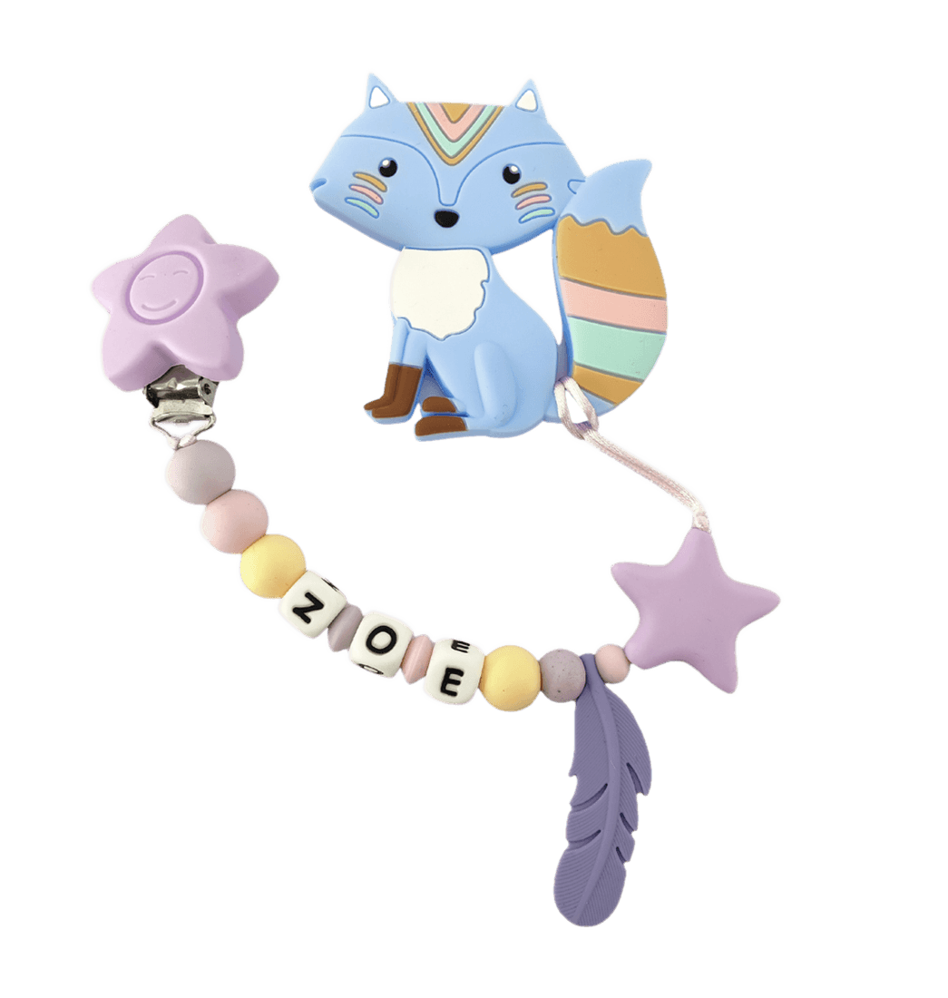 Con una encantadora figura mordedora y el nombre de tu pequeño/a (hasta 10 letras), este sujetador no solo calma sus encías, sino que estimula su curiosidad y sentidos. Además, su clip resistente permite sujetarlo fácilmente a la ropa, la cobija o el coche, evitando caídas y manteniendo todo siempre a la vista. También puedes usarlo como portachupo.