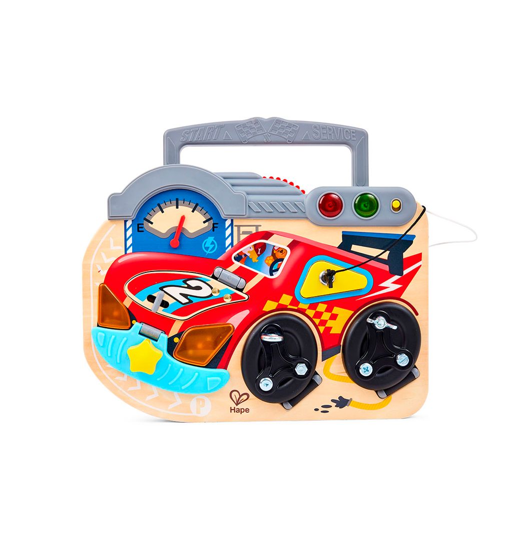 Con los juguetes de Hape, los más pequeños de casa pueden explorar, imaginar y desarrollar habilidades mientras se divierten en grande. Este tablero de actividades con tema de reparación de coches ofrece a los niños una experiencia de carreras cautivadora, combinando varias funciones interactivas en una animada escena de carreras para inspirar el juego creativo.