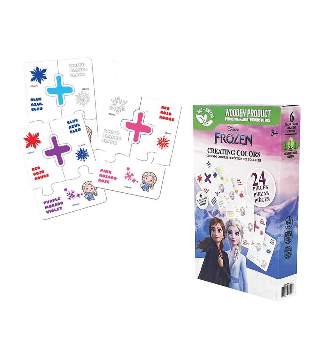 Descubre la magia del aprendizaje con estas divertidas y didácticas tarjetas de madera, diseñadas para ayudar a los niños a identificar y memorizar colores mientras juegan y exploran junto a sus personajes favoritos de Frozen.