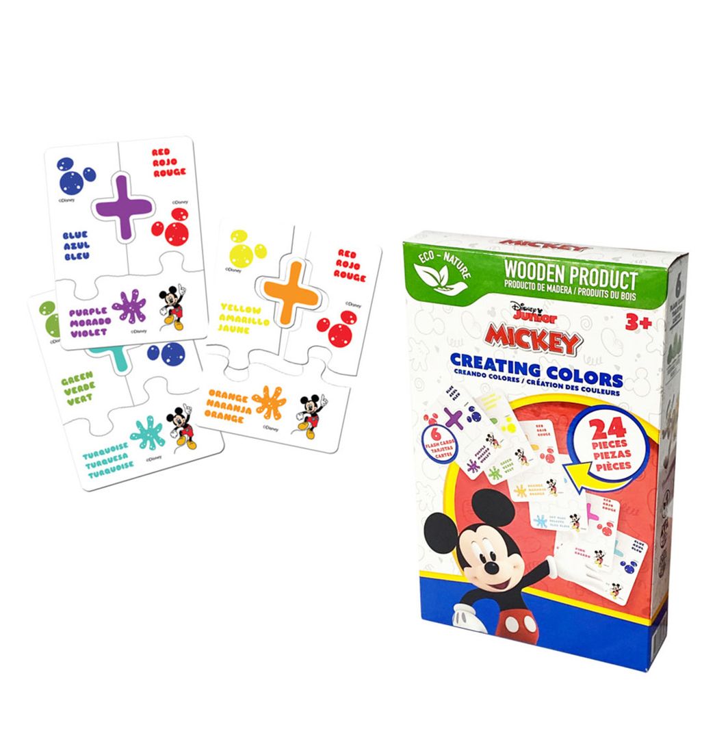 Descubre la magia del aprendizaje con estas divertidas y didácticas tarjetas de madera, diseñadas para ayudar a los niños a identificar y memorizar colores mientras juegan y exploran junto a su personaje favorito Mickey.