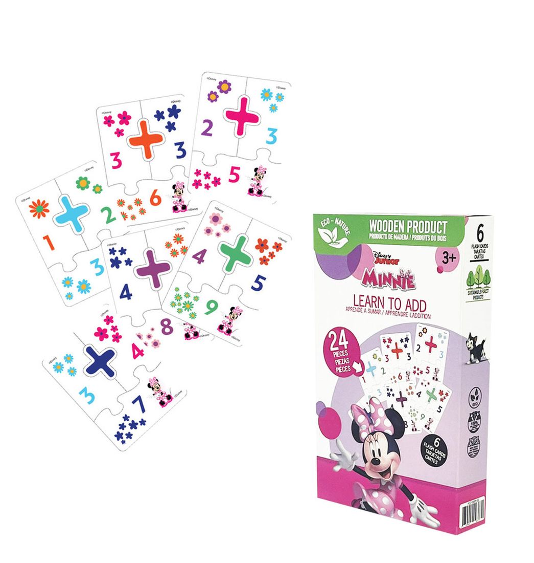 Descubre la magia del aprendizaje con estas divertidas y didácticas tarjetas de madera, diseñadas para ayudar a los niños a aprender a restar mientras juegan y exploran junto a su personaje favorito Minnie.
