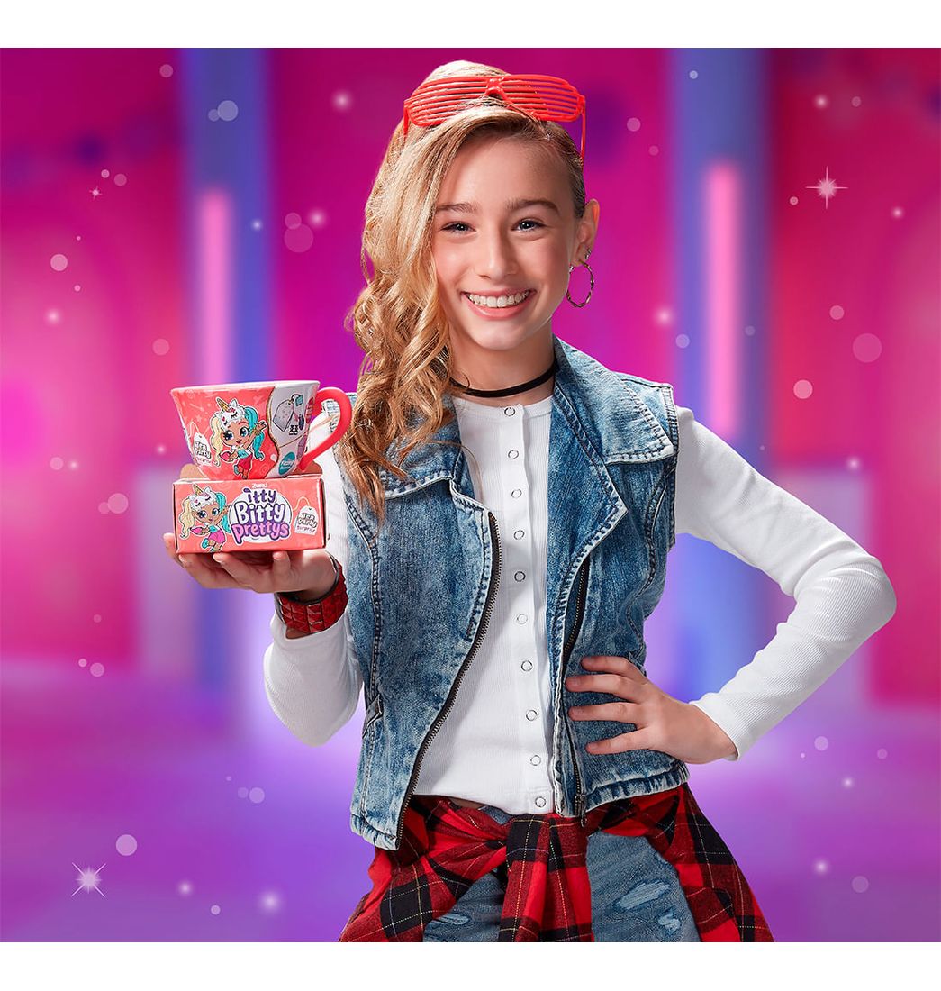 ¡Observa el burbujeo del cubo brillante y revela accesorios aún más originales! ¡Con más de 12 fabulosas sorpresas para desenvolver, encontrarás todos los accesorios que necesitas para organizar una fiesta de té fabulosa! Con 13 atrevidas y elegantes Itty Bitty Prettys que puedes coleccionar, ¿a quién encontrarás en tu próxima taza sorpresa?
