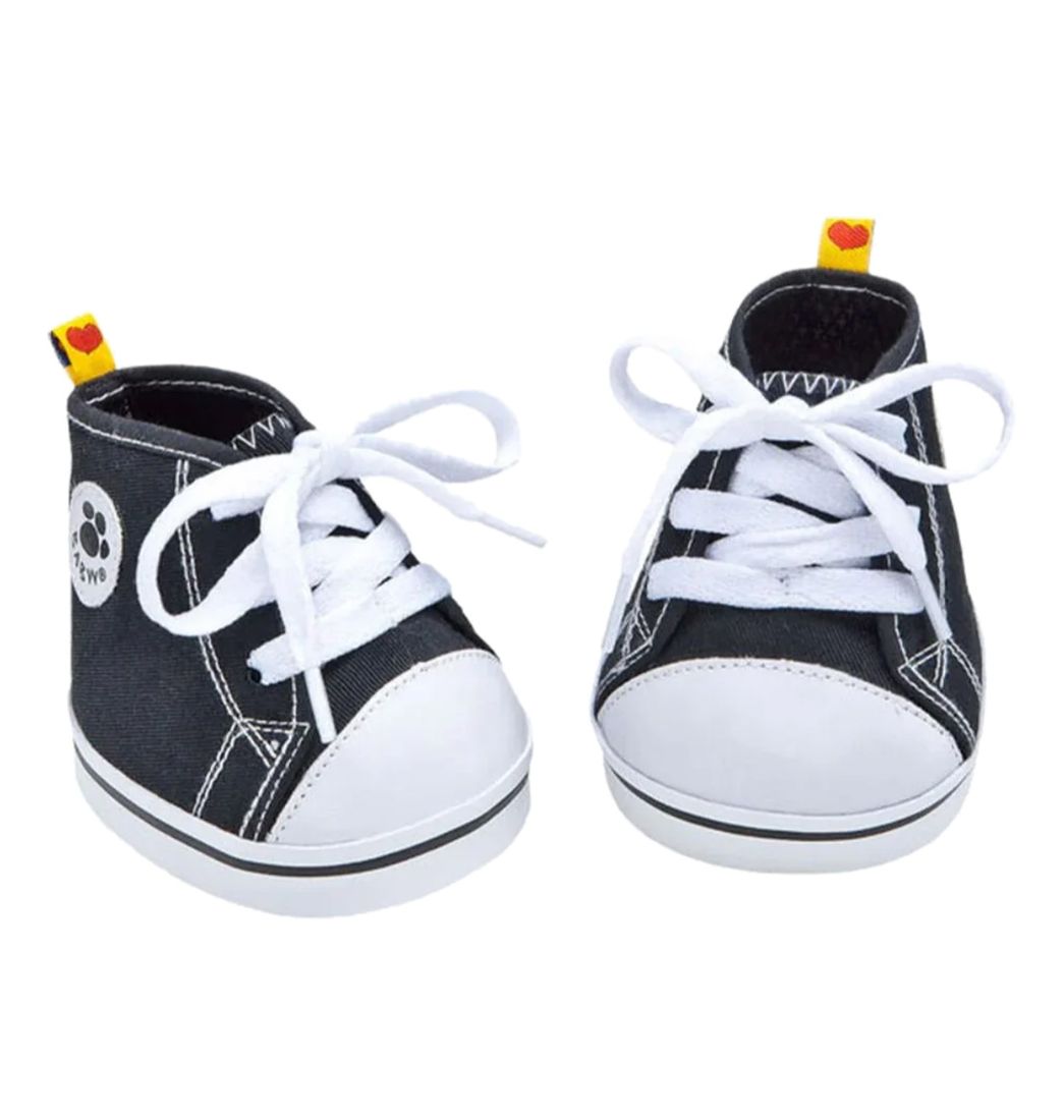 Completa el look de tu peluche con estos adorables zapatos altas de lona negra, los cuales están diseñados especialmente para tus peluches favoritos de Build A Bear. Cuentan con un diseño versátil y lleno de estilo que combina a la perfección con cualquier atuendo. Lo mejor de todo es que son el complemento ideal para darle un toque moderno a tu amigo Build A Bear.