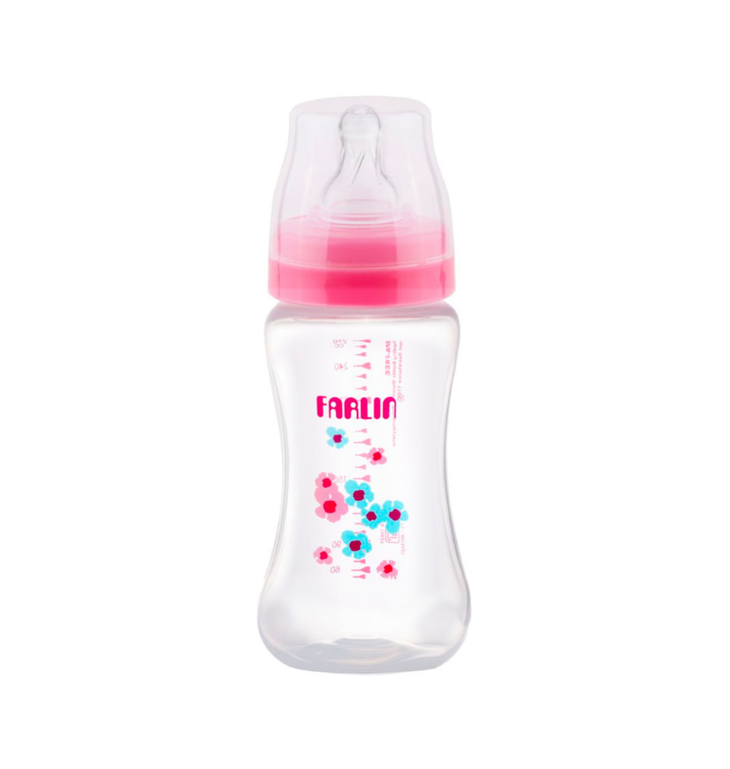 Tetero Cuello Ancho 9 Oz Farlin - Transparente/Rosado