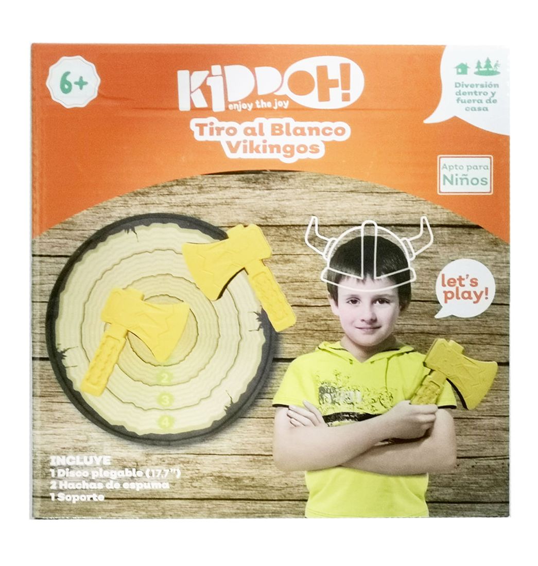 | DetallesHtml | Que tu niño se sienta todo un vikingo! Fabuloso juego de tiro al blanco con hachas de juguete, una manera divertida de desarrollar destrezas motrices y de coordinación pasando un rato ameno en familia o con amigos. Características:
