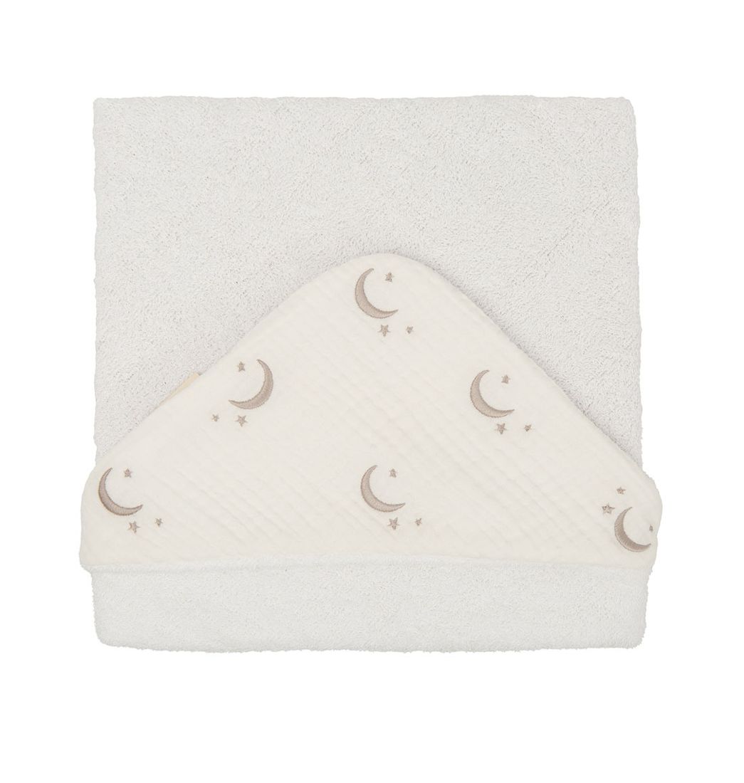 Su diseño con capucha no solo mantiene el calor corporal, sino que también aporta un toque adorable gracias a sus suaves estampados de lunas y estrellas. Con medidas de 75x75 cm, es perfecta para los primeros años, adaptándose con facilidad al crecimiento. Monbaby cuida cada detalle para garantizar un producto de alta calidad que acompaña los momentos más especiales. ¡Anímate y adquiérela ahora!.