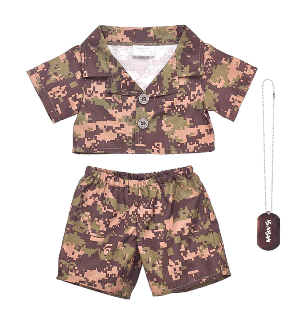 ¡No dejes que tu amigo se pierda en la caja de arena! Este traje de camuflaje verde es el uniforme perfecto para el entrenamiento básico de tu amigo peludo. Los accesorios y demás complementos se venden por separado. ¡Anímate a personalizar a tu peluche y adquiérelo ahora!.