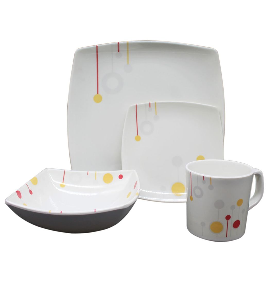 Vajilla en Melamina Aster Blanca Con Diseño Amarillo y Rojo - Sabana