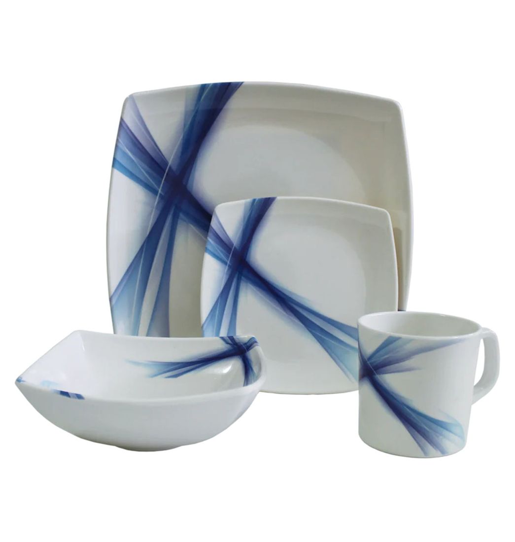 Vajilla en Melamina Aster Blanca Rayas Azules Cuadrada 16 Piezas 4 Puestos - Sabana