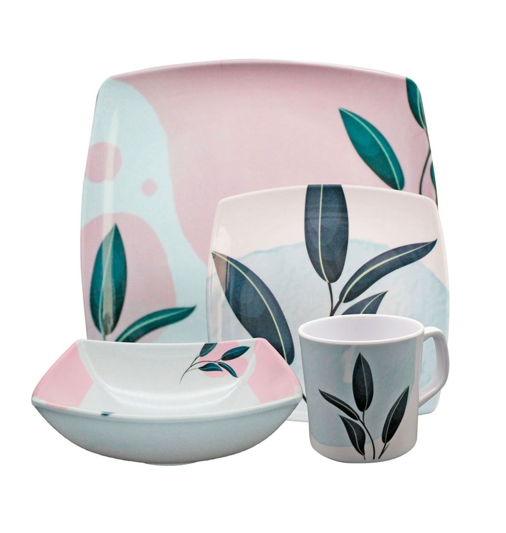 Incluye: 4 platos grandes;4 platos medianos;4 platos soperos;4 pocillos.