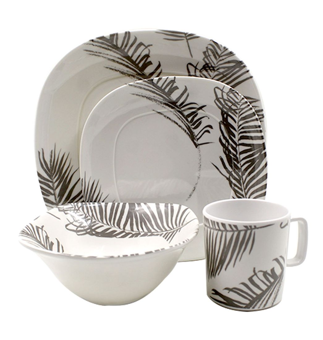 Vajilla en Melamina Imperial Blanca Con Diseño de Ramas Cafés - Sabana
