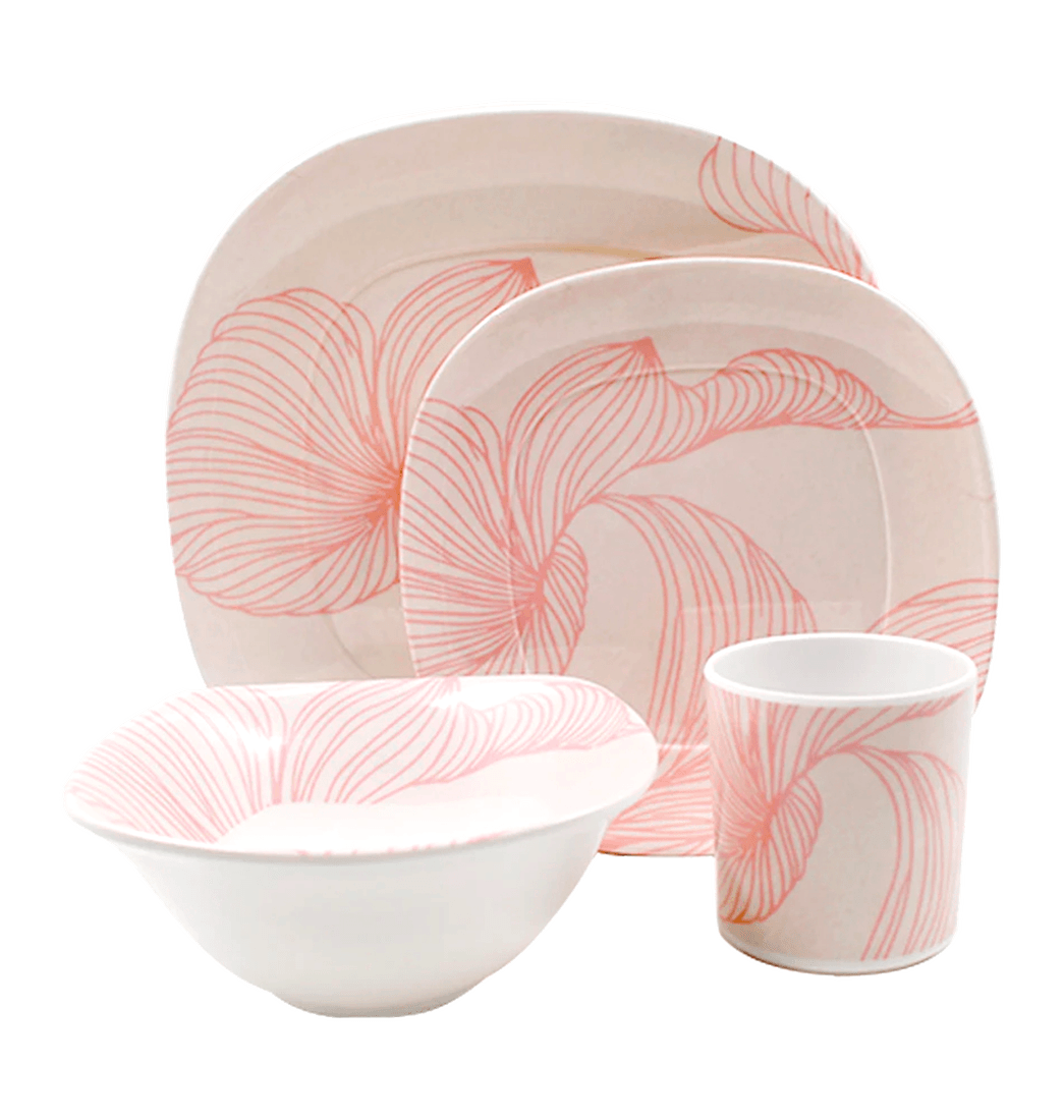 Vajilla en Melamina Imperial Blanca Líneas Naranja Semi Cuadrada 16 Piezas 4 Puestos - Sabana