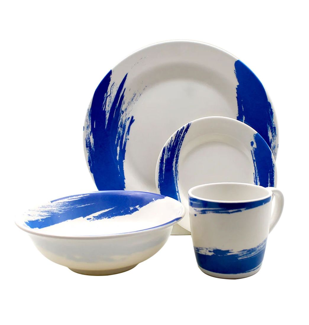 Vajilla Melamina Clasicc Blanca Pinceladas Azules Redonda 16 Piezas 4 Puestos - Sabana - Vajilla Clasicc Blanca Pinceladas Azules Redonda 16 Piezas 4 Puestos - Sabana PIEZAS 4 PUESTOS