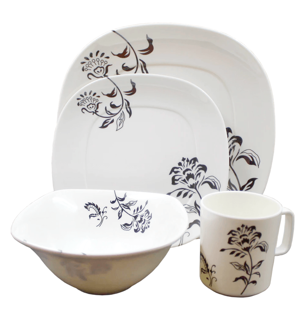 Vajilla Melamina Imperial Blanca Flores Negras Semi Cuadrada 16 Piezas 4 Puestos - Sabana - Vajilla Imperial Blanca Flores Negras Semi Cuadrada 16 Piezas 4 Puestos - Sabana
