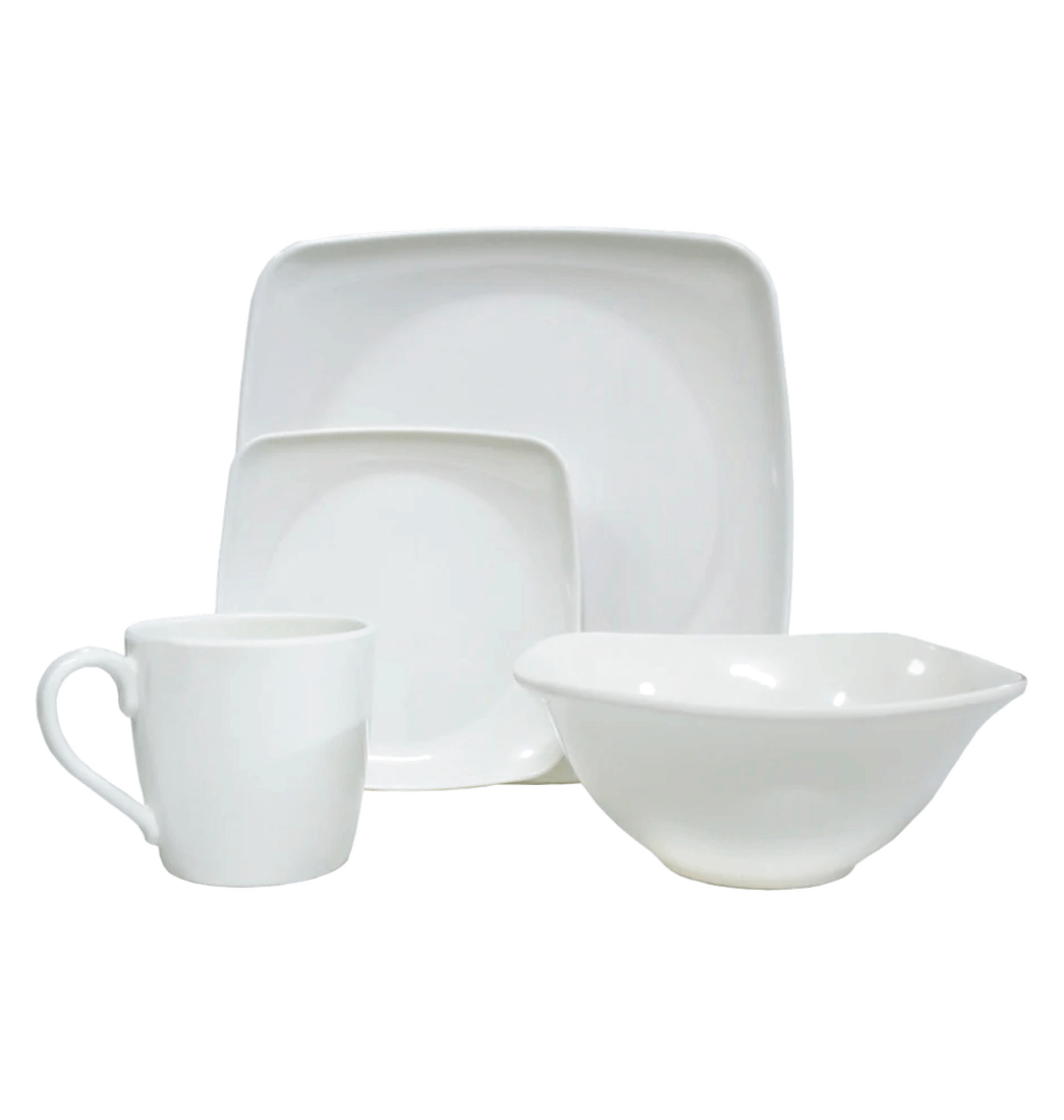 Vajilla Melamina Primavera Blanca Cuadrada 16 Piezas 4 Puestos - Sabana - Vajilla Primavera Blanca Cuadrada 16 Piezas 4 Puestos - Sabana