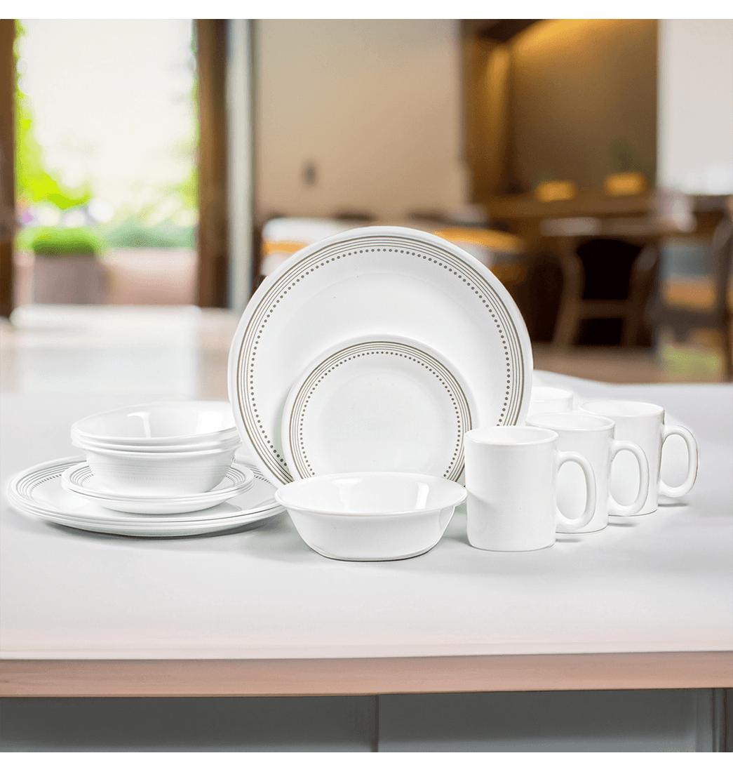 Lleva tus mejores platos a la mesa con la Vajilla Corelle 4 Puestos / 16 Piezas fabricada en un 80 % de vidrio puro reciclado. La tecnología de vidrio de triple capa de Corelle proporciona una mayor resistencia y durabilidad. Esta hermosa Vajilla cuenta con un diseño moderno e innovador perfecto para darle un toque único a tu mesa.