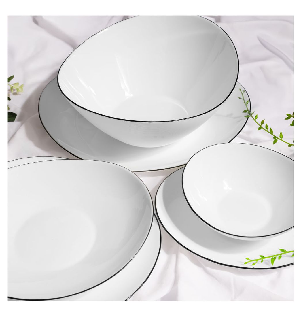 Vajilla Negra Blanca en Opal Edge Redonda 18 Piezas - Essenza