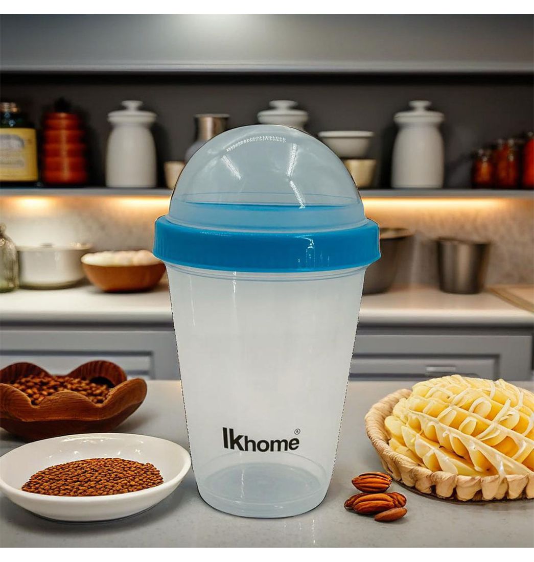 Vaso con Tapa para Cereal Azul 398ml Plástico - Ikhome
