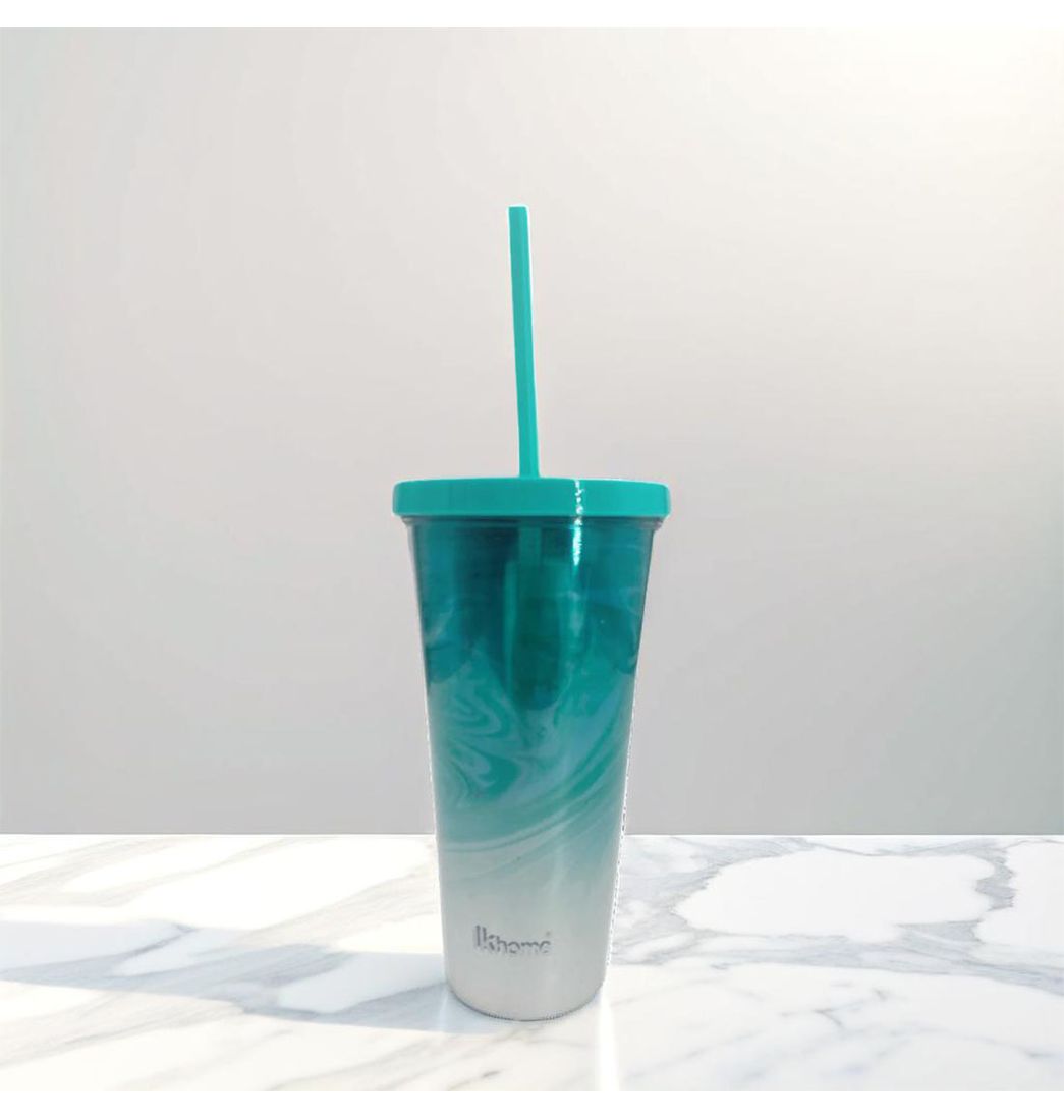 Vaso Pitillo Doble Pared Plástico Azul/Gris 590ml - Ikhome