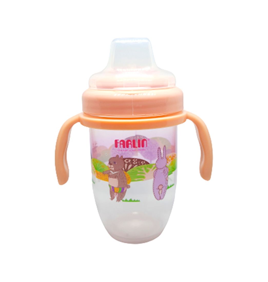 Vaso Plástico con Agarradera Farlin - Transparente/Naranja