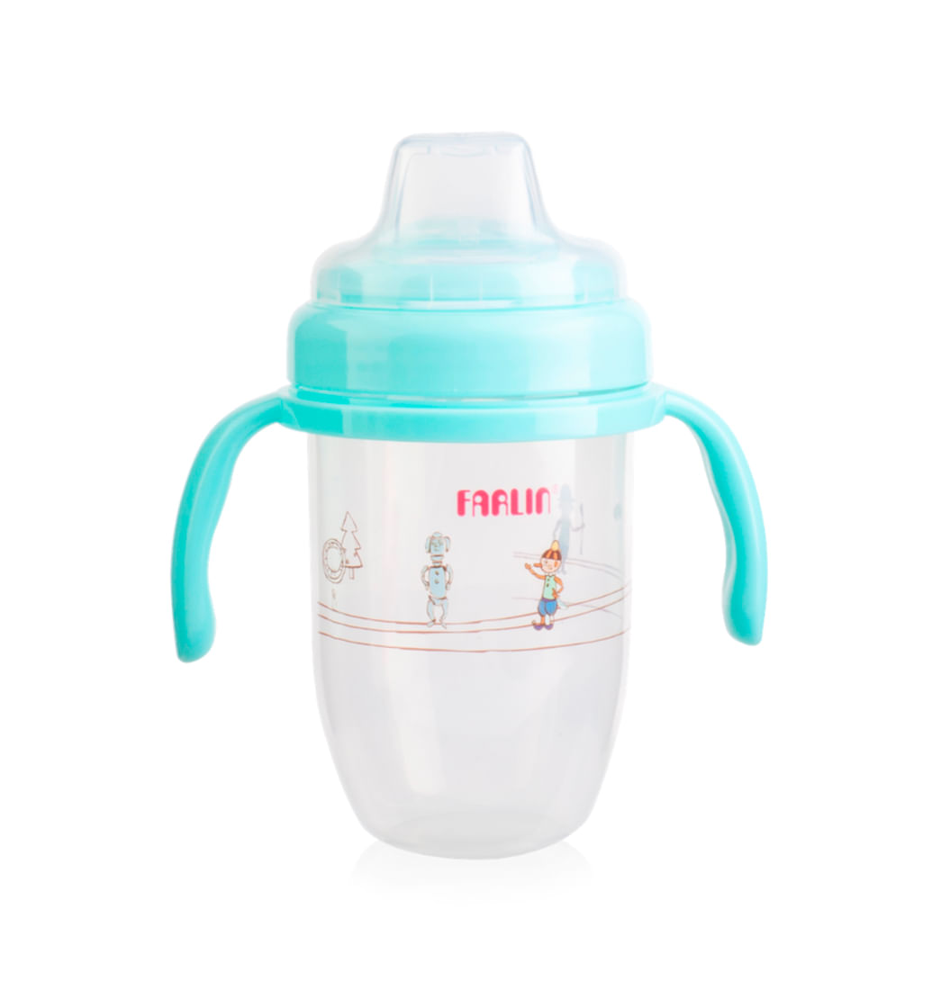 Vaso Plástico con Agarradera Farlin - Transparente/Turquesa