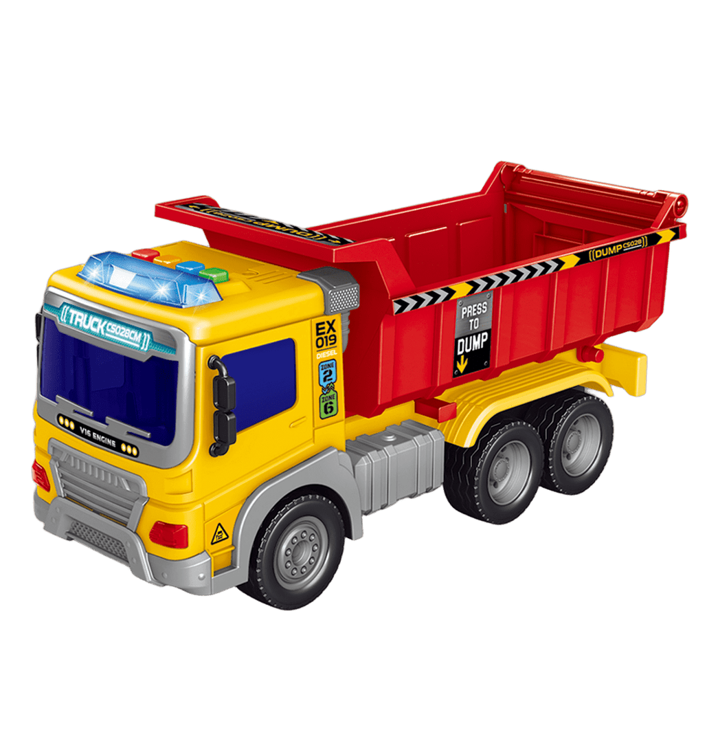 Este fabuloso vehículo de Volqueta con efectos de luces y sonidos, es el juguete ideal para vivir emocionantes aventuras llenas de diversión e imaginación. Su diseño dinámico y a fricción, invitan a niños y niñas a crear increíbles aventuras sobre ruedas.