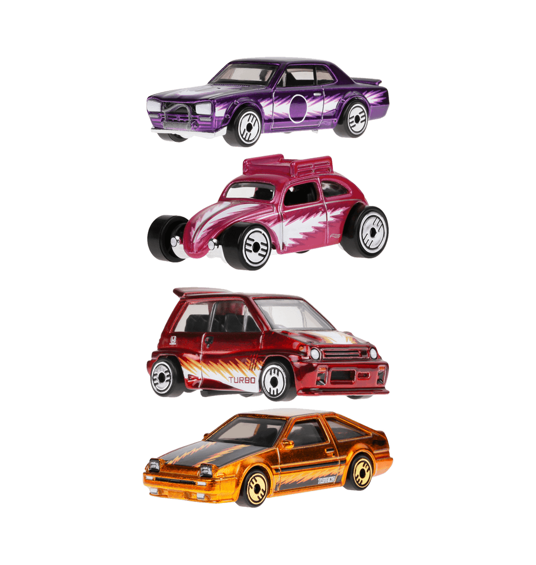 Cada vehículo de metal a escala 1:64 cuenta con decoración completa en la parte delantera y trasera, piezas metalizadas al vacío, cinco operaciones decorativas, ruedas Ultra Hots exclusivas de Hot Wheels y pintura Spectraflame. Son un regalo increíble para los verdaderos amantes de los vehículos y los coleccionistas premium de Hot Wheels.