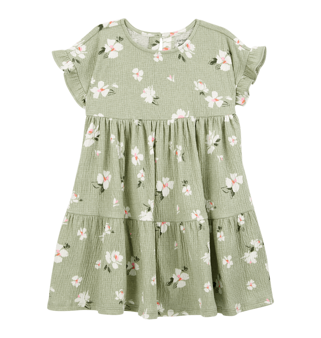 Vestido Manga Corta Flores Verde Niñas - Carter's