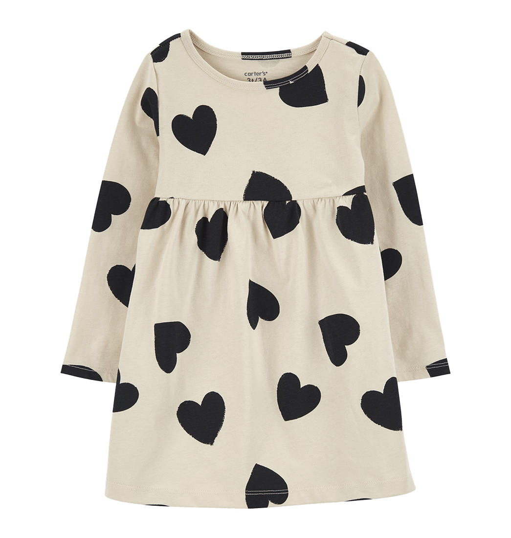 Vestido Manga Larga Corazones Beige Niñas - Carter's