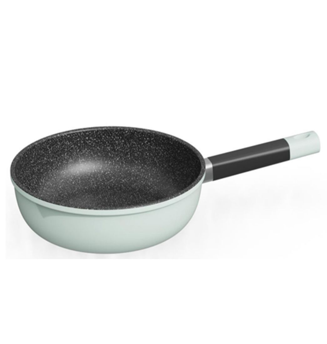 Descubre la excelencia culinaria con este sartén wok de aluminio forjado, diseñado para ofrecerte una experiencia de cocción inigualable. Su recubrimiento antiadherente cerámico garantiza que tus alimentos se cocinen de manera uniforme y se deslicen fácilmente, mientras que el mango de baquelita proporciona un agarre seguro y cómodo.